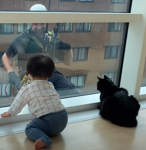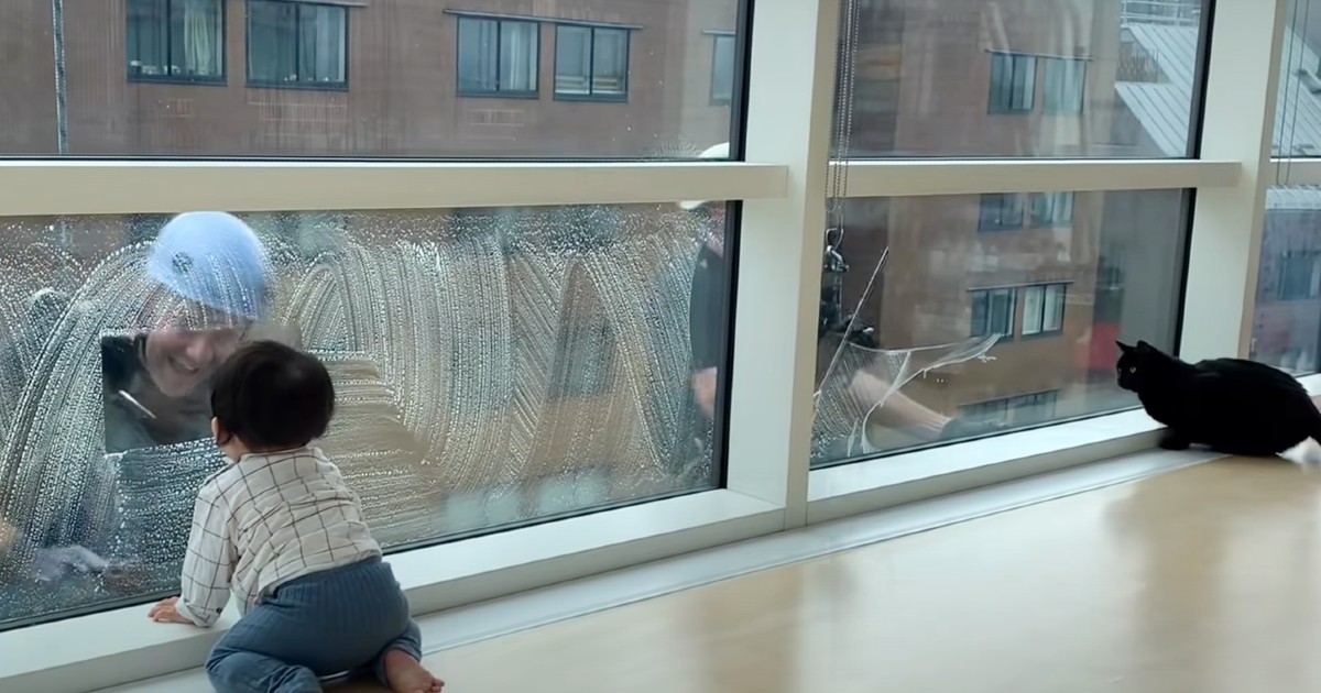 It’s something that you never expect to happen but they did. Just like this cute video of a baby, a cat, and window washers.