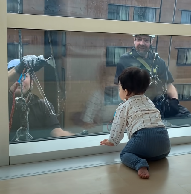 It’s the adorable baby, who is Nagi. In this viral video, Guinness and Nagi were spotted having fun watching the window washers.
